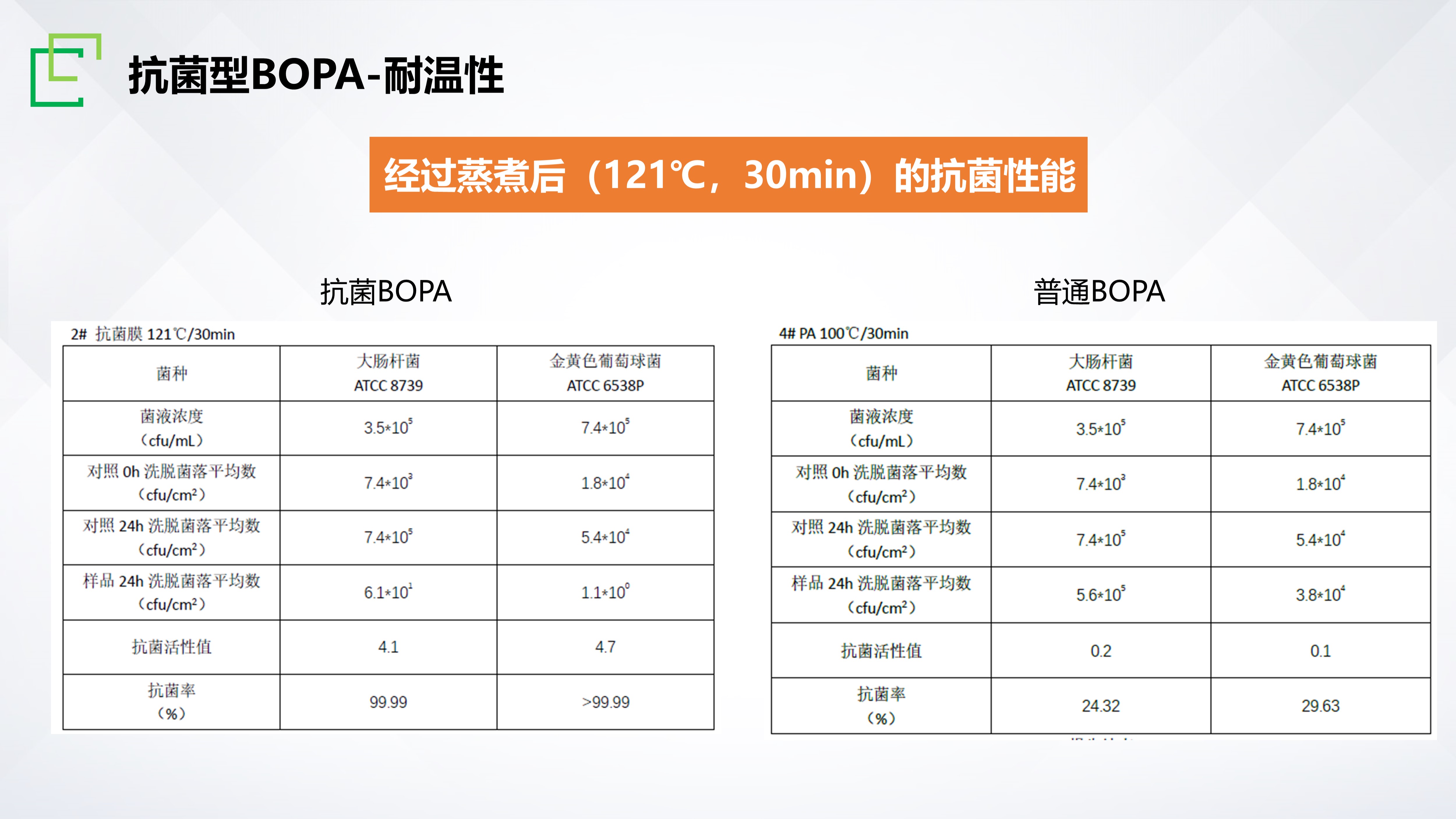 長塑矢量膜®APA抗菌型材料,是為應(yīng)對食品流通過程中的病原微生物污染而研發(fā)的一款新型功能性膜材,目前已通過國際權(quán)威檢測機構(gòu)SGS認(rèn)證,對常見革蘭陰性、陽性代表菌大腸桿菌和金黃葡萄球菌擁有優(yōu)異的抗菌性能,抗菌率≥99.9%。