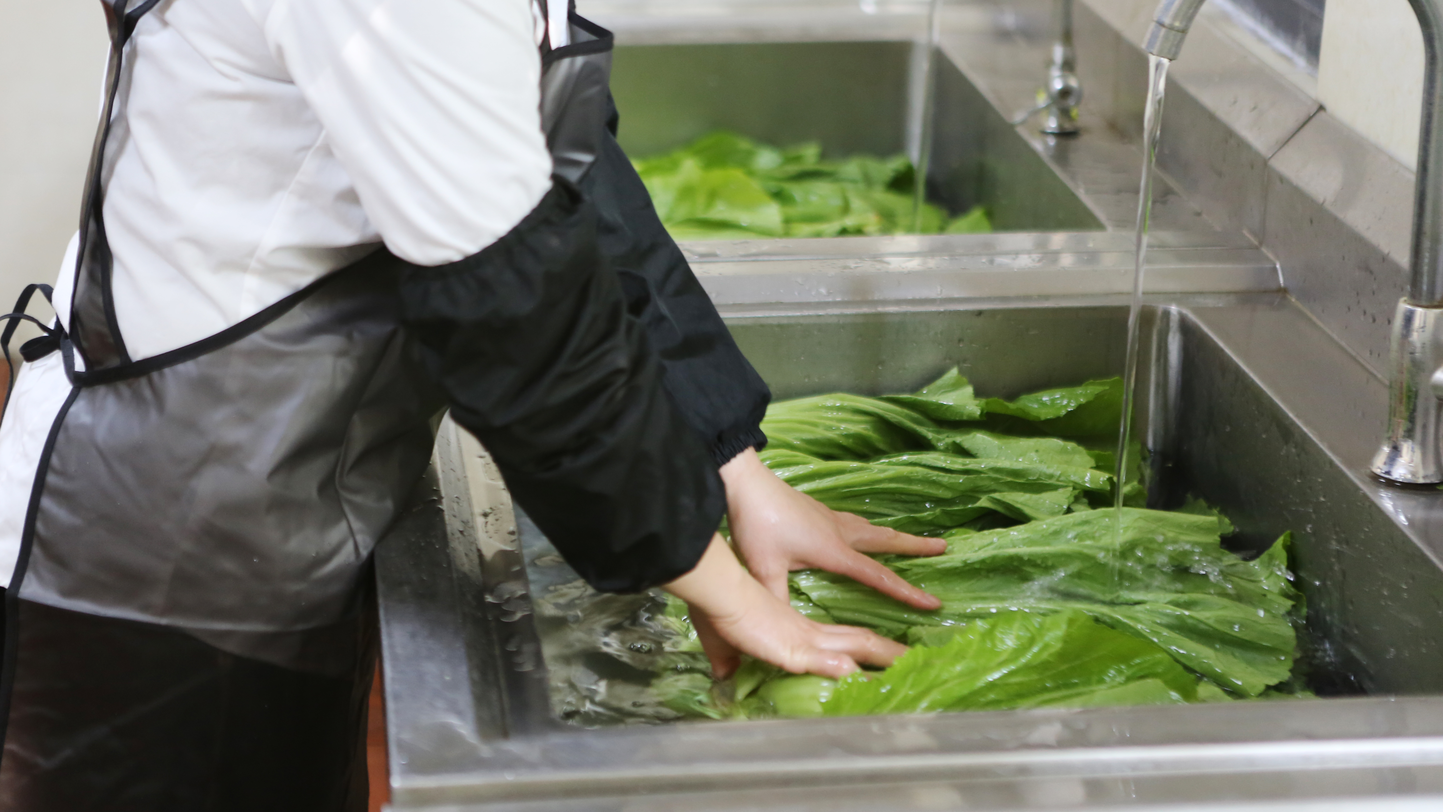 中侖食堂對肉類、蔬菜及水產(chǎn)品嚴(yán)格執(zhí)行分池清洗、專池專用。比如蔬菜,在挑揀后要求清水至少揉搓浸泡30分鐘,確保無泥沙、無不良品;